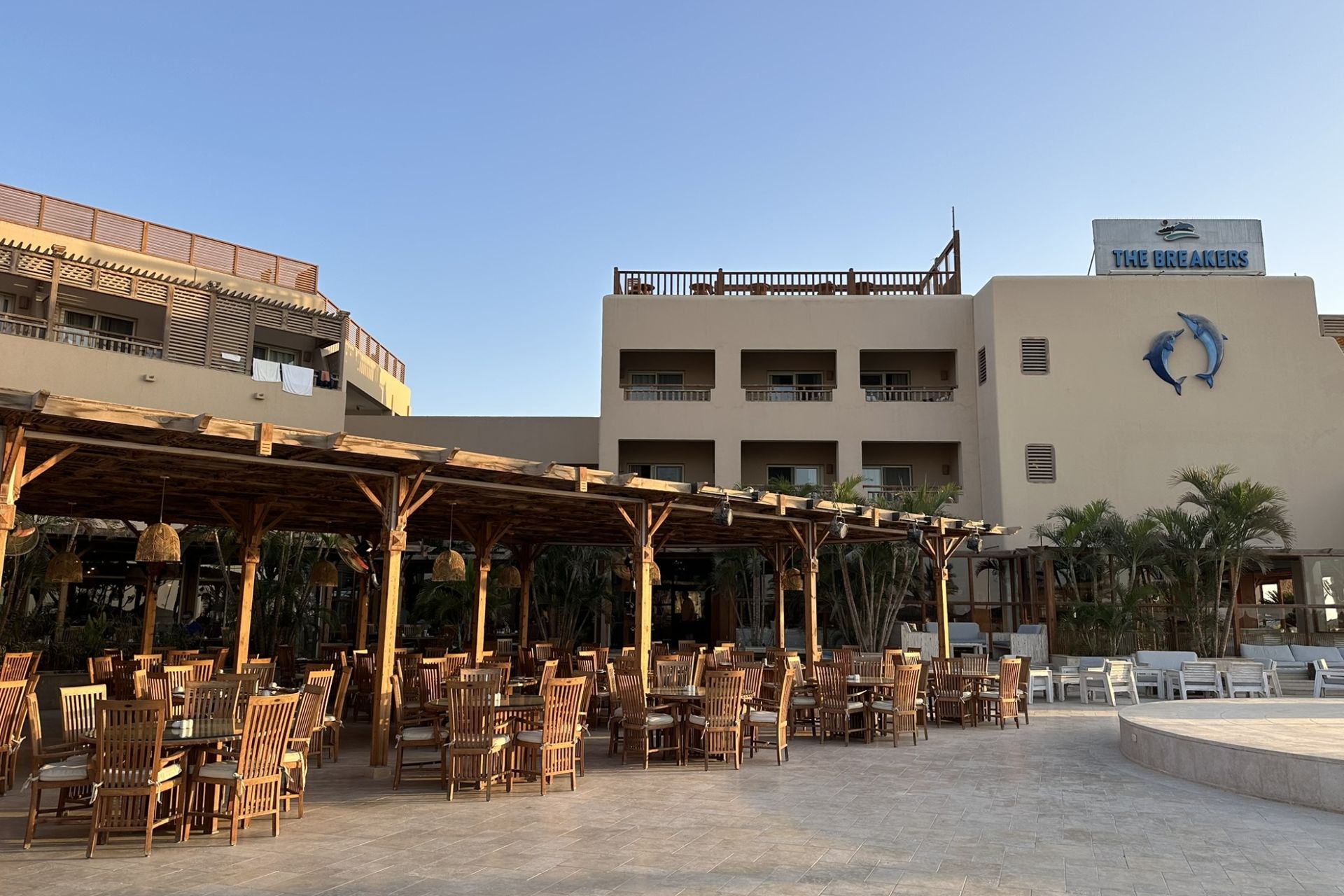 Das Hotel verfügt über eine Rezeption, ein Buffet-Restaurant mit schöner Terrasse, eine Hotel-Bar, eine gemütliche Open Air Taucher-Bar mit Chill-Out-Area und über einen beheizten Pool, der sich in der Mitte der Anlage befindet. Ein ganz besonderer Ort im Breakers ist die Rooftop-Bar, in der man nach Abschluss eines spannenden Tauchtages bei einem leckeren Cocktail den atemberaubenden Sternenhimmel bestaunen kann.