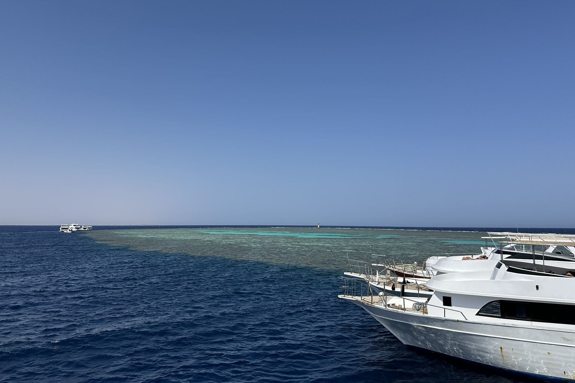 Am Soma Bay Hausriff ist von 6:00 bis 19:00 Uhr Non-Limit-Tauchen möglich. Die montierte Tauchausrüstung wird mit umweltfreundlichen Elektro-Caddys bis ans Ende des 420 Meter langen Stegs gefahren, wo sich der komfortable Einstieg befindet.